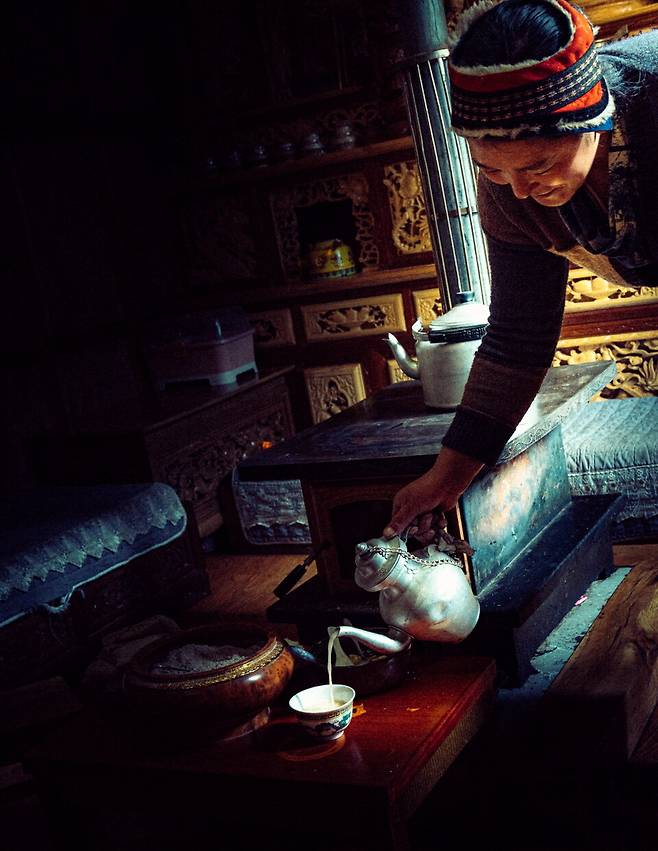 따뜻한 불가에 모여 앉아 야크 버터티를 나눠 마시는, 잔에 담긴 티가 줄어들 새도 없이 주전자가 기우는. 가만히 구석구석을 들여다보면 이 집에서 있었을 이모저모가 선연하게 그려진다.