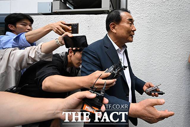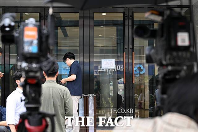 [더팩트ㅣ서예원 기자] 김건희 여사와 관련한 의혹을 수사하는 민중기 특별검사팀 관계자가 압수수색을 위해 3일 오후 서울 종로구 삼부토건 사무실로 들어서며 취재진의 질의에 답변하고 있다.