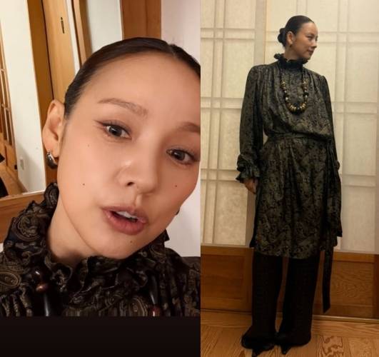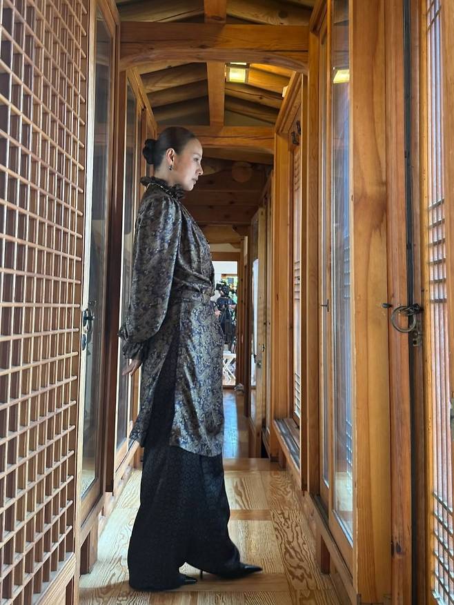 여기에 볼드한 우드·골드 믹스 네크리스로 시선을 모았으며, 한옥을 배경으로 포즈를 취하고 있는 이효리는 전체적으로 전통적인 멋과 현대적인 감각이 어우러진 독보적인 무드를 완성했다.
