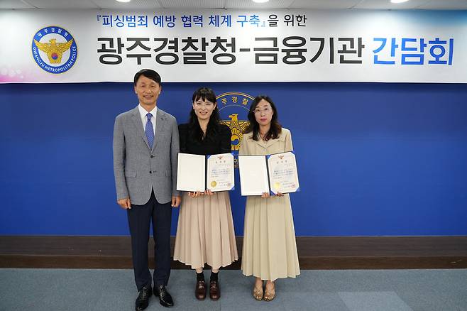 광주은행은 지난달 26일 광주경찰청에서 열린 '피싱범죄 예방 협력 체계 구축을 위한 광주경찰청-금융기관 간담회'에서 보이스피싱 피해 예방에 기여한 공로를 인정받았다고 오늘(3일) 밝혔습니다.