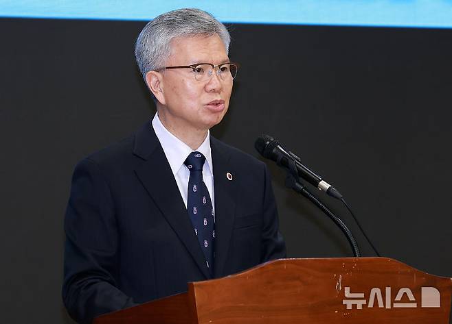[서울=뉴시스] 이영환 기자 = 김택우 대한의사협회 회장이 3일 오후 서울 용산구 대한의사협회에서 의료현안 정례 브리핑을 하고 있다. 2025.07.03. 20hwan@newsis.com
