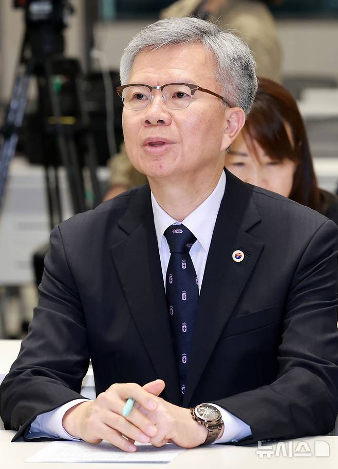 [서울=뉴시스] 이영환 기자 = 김택우 대한의사협회 회장이 3일 오후 서울 용산구 대한의사협회에서 의료현안 정례 브리핑을 마친 후 자리에 앉아 있다. 2025.07.03. 20hwan@newsis.com