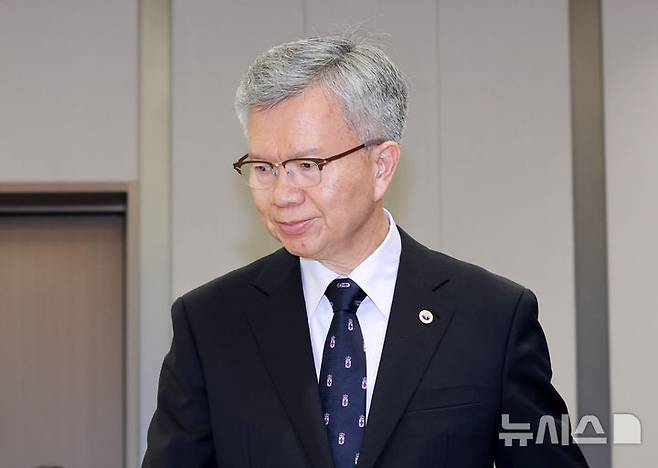 [서울=뉴시스] 이영환 기자 = 김택우 대한의사협회 회장이 3일 오후 서울 용산구 대한의사협회에서 의료현안 정례 브리핑을 마친 후 자리로 향하고 있다. 2025.07.03. 20hwan@newsis.com
