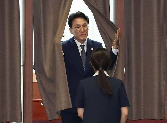 | 김민석 국무총리 후보자가 3일 오후 서울 여의도 국회에서 열린 본회의에서 국무총리 임명동의안 기표를 한 뒤 기표대를 나서고 있다. |