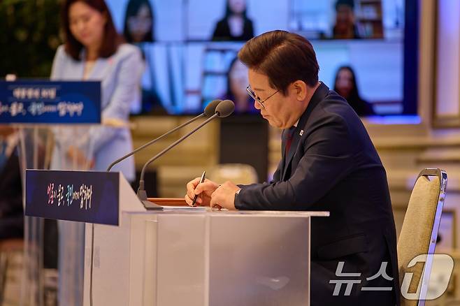 (서울=뉴스1) 허경 기자 = 이재명 대통령이 3일 서울 청와대 영빈관에서 열린 ‘대통령의 30일, 언론이 묻고 국민에게 답하다’ 기자회견에서 기자들의 질문을 메모하고 있다. (대통령실 제공. 재판매 및 DB 금지) 2025.7.3/뉴스1