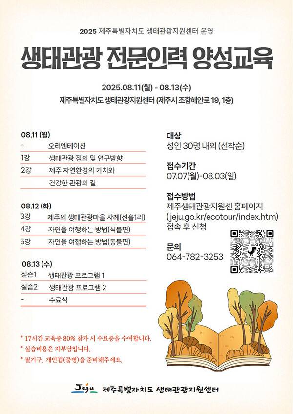 제주도생태관광지원센터, 2025 생태관광 전문인력 양성교육 참가자 모집
