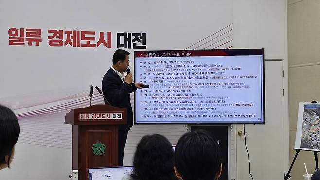 대전시는 3일 시청 기자실에서 남시덕 교통건설국장 주관으로 브리핑을 열고 복합적인 요인으로 공기가 연장되었던 유성구 외삼네거리와 유성복합터미널을 연결하는 6.6㎞ BRT(간선급행버스) 도로를 2030년 개통한다고 밝혔다.
