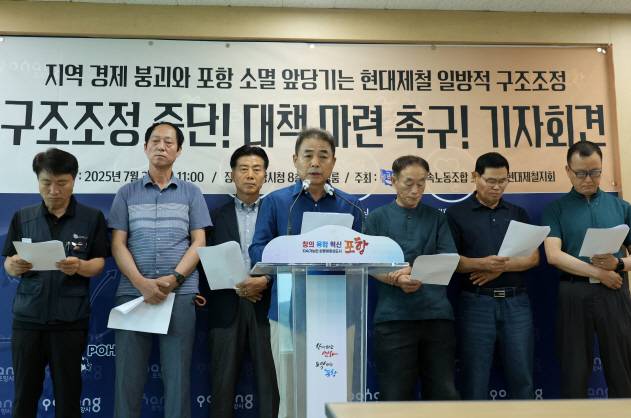 이들은 포항시청에서 기자회견을 열어 "기업 논리만 앞세운 구조조정은 지금이 끝이 아니라 지역경제를 무너뜨릴 것"이라며 "구조조정은 포항공장 노동자뿐만 아니라 협력업체, 화물노동자, 건설노동자, 그 가족 등 수만명의 생존권을 위협하고 있다"고 주장했습니다.
