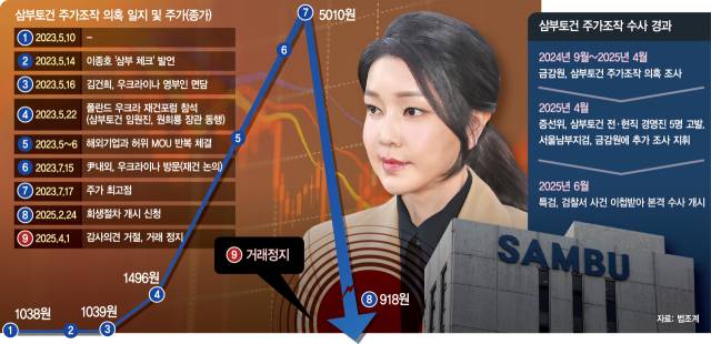 김 여사 연루 의혹은 2023년 5월 14일 도이치모터스 주가조작 사건의 핵심 인물이자 김 여사의 계좌 관리인으로 알려진 이종호 전 블랙펄인베스트 대표가 해병대 예비역 단체대화방 ‘멋쟁해병’에서 “삼부 내일 체크하고”라는 메시지를 보내면서 불거졌다. 실제로 이틀 뒤인 5월 16일 김 여사는 우크라이나 영부인과 면담했고 같은 달 24일에는 삼부토건 임원들이 원희룡 당시 국토교통부 장관과 함께 폴란드에서 열린 ‘우크라이나 재건 포럼’에 참석하면서 주가 상승에 대한 기대감을 키웠다. 2023년 국토부 시공능력평가에서 77위에 그쳤던 삼부토건은 단기간에 ‘우크라이나 재건 대표 테마주’로 급부상했다. 당시 우크라이나 재건 포럼에는 현대건설·삼성물산·포스코 등 대기업들이 참여했다.