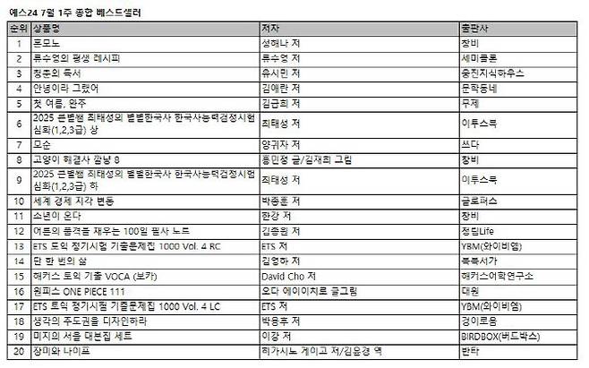 김애란 신작 4위, 박정민 펴낸 책 5위 기록