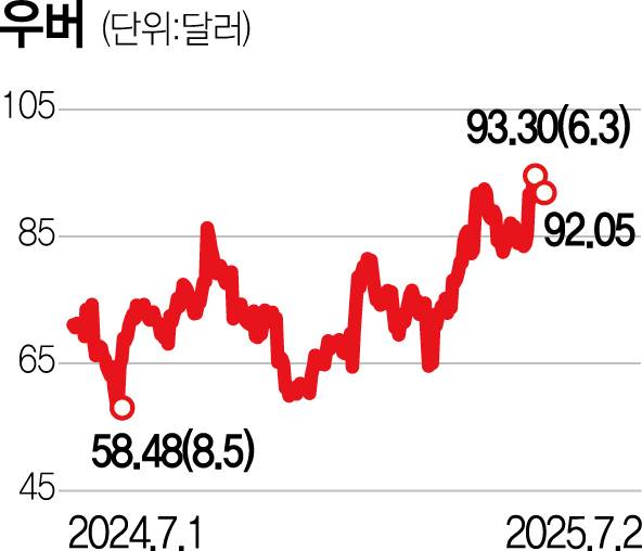 [글로벌 핫스톡] 모빌리티 1위 우버, 자율주행 붐 타고 질주