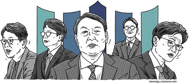 한강식이 영화 속의 ‘재앙’이었듯, 윤석열은 현실 속의 재앙이었다. 어찌된 영문인지 2017년 5월, 새로 출범한 문재인 정부는 윤석열 검사를 서울중앙지검장에 임명했다. 2년 뒤 윤석열은 검찰총장이 됐다. “신임 총장님에 대한 기대가 크다”고도 했다. 그런데 윤석열 검찰이 이른바 ‘조국 사태’를 일으키고 청와대를 겨냥한 엉터리 수사를 해도 문 정부는 여전히 “(윤석열은) 문재인 정부의 검찰총장”이라 신뢰했다. 오호통재라, 믿던 도끼에 제 발등 찍혔으니, 정말 수수께끼다.