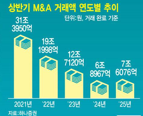 자본시장 한 관계자는 "올해 상반기는 전체적으로 M&A 시장 분위기가 좋았음에도 '부익부 빈익빈' 경향이 강했다"며 "그렇다 보니 큰 딜들이 밸류에이션 부담에 하반기로 많이 밀렸다"고 평가했다.