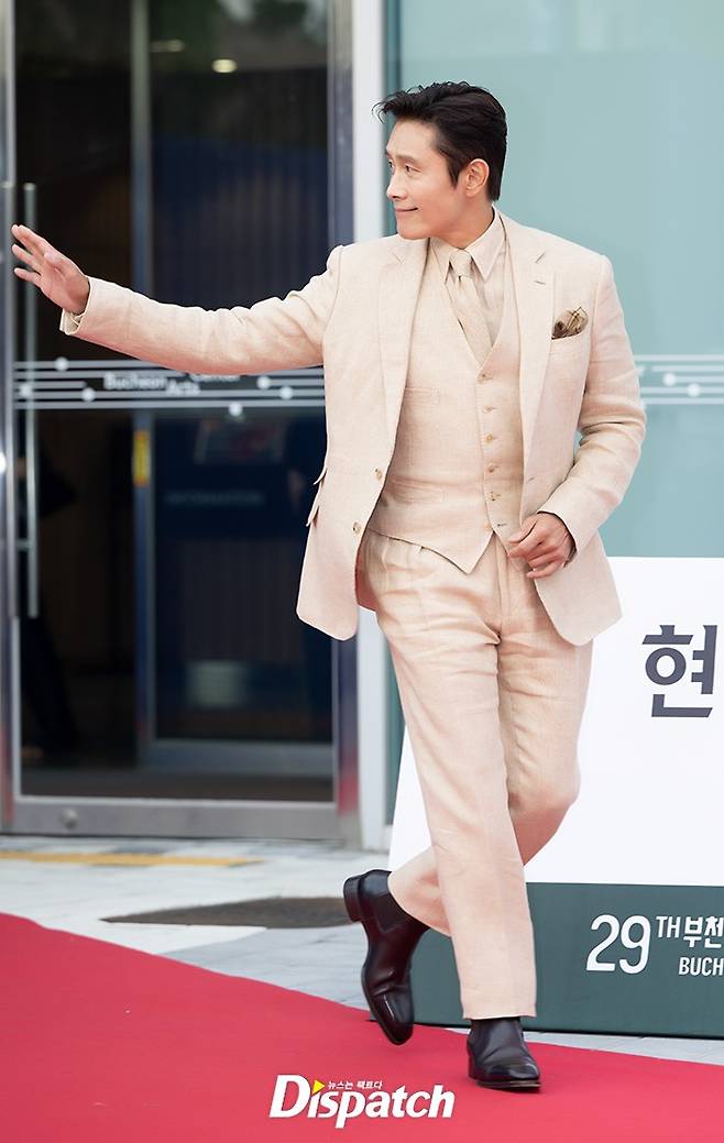 이병헌은 베이지톤 수트로 멋진 스타일을 보여줬다. 댄디한 표정과 멋진 포즈로 시선을 사로잡았다.