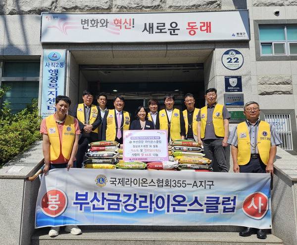 이번 성품은 회장 이취임행사에서 축하 화환 대신 받은 백미를 기탁한 것으로, 부산금강라이온스클럽은 지난 3월에도 관내 경로당에 간고등어를 기부하는 등 지역사회에 꾸준한 나눔을 실천하고 있다.