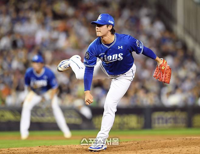 삼성 이호성이 3일 잠실구장에서 열린 2025 KBO리그 두산과의 경기 9회말 등판해 힘차게 공을 던지고 있다. 이호성은 1이닝 1실점으로 승리를 지켜내며 시즌 7세이브를 기록했다. 2025. 7. 3.