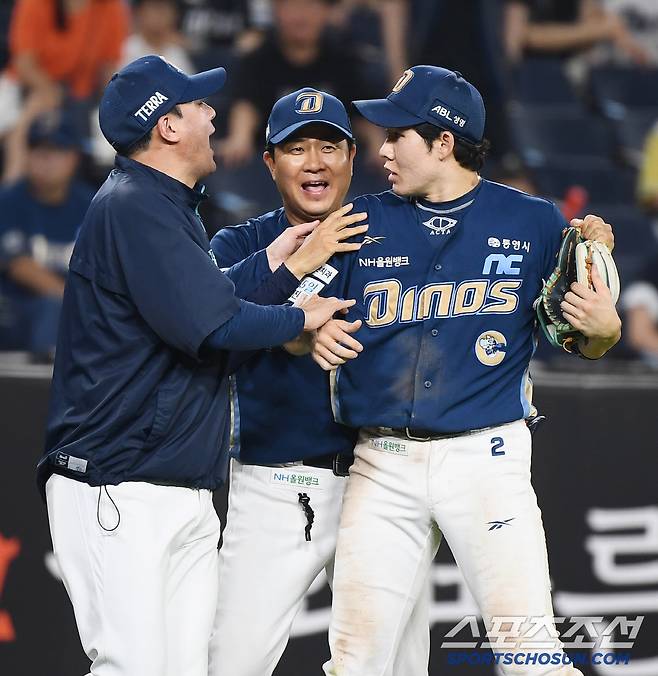 3일 대전 한화생명볼파크에서 열린 NC-한화전. 10회말 1사 1, 3루 노시환의 2루수 플라이 때 박민우가 포구 후 송구동작에서 공을 떨어뜨리며 실점했다. 이후 1루주자 문현빈의 2루 진루를 인정하자 박민우가 항의하고 있다. 대전=정재근 기자 cjg@sportschosun.com/2025.7.3/