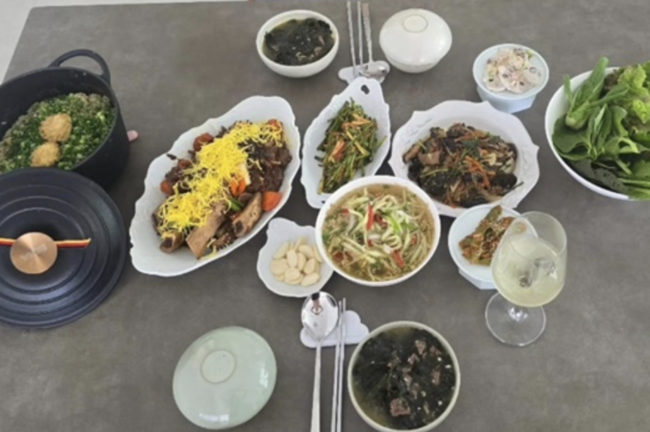 그는 “아내 밥상에 매일매일이 감사합니다”라는 짧은 글과 함께 직접 찍은 밥상 사진을 올린 것. 전복솥밥, 갈비찜, 잡채, 미역국 등 정성이 가득 담긴 반찬들은 그의 일상을 그대로 보여주는 듯했다. 다른 사진 속 밥상도 된장찌개와 삼겹살, 쌈 채소까지 다채롭게 구성돼 있어 보는 이들의 부러움을 자아냈다.