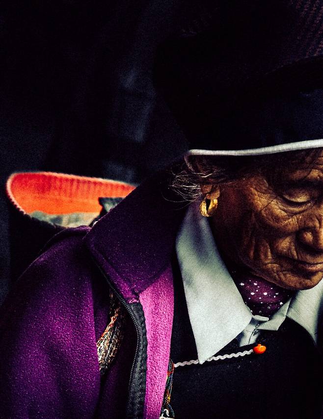 그런데 설산이라면 말이 다르다. 설산의 소나무 숲, 큰 바위는 절대 건드려서는 안 될 곳이라 여긴다. 설산의 중심은 자연신인 '수'의 영역이기 때문이다. 그 설산이 바로 나시족의 성지, '옥룡설산(玉龙雪山)'이다. 1년 내내 녹지 않는 산 위의 만년설이 마치 하얀 용을 연상케 해 붙여진 이름. 옥룡설산 산맥은 남북으로 35km, 동서로 13km 뻗어 있으며 총 13개의 봉우리가 있다. 그중 최고봉인 샨지두(扇子陡)봉은 해발 5,596m에 달한다. 삶에서 멀어 순백이고 믿음으로 가까워 고귀한 봉우리, 나시족의 바람은 이리도 높아 1년 내내 녹질 않는다.