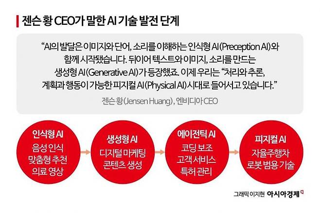 '피지컬AI'는 산업계의 새로운 전략 키워드로 떠오르면서 생산현장 뿐 아니라 순찰 등 경비, 농업 분야로 적용 범위를 넓히고 있다. 피지컬 AI는 AI 기술이 로봇, 사물인터넷(IoT) 등 다양한 기기와 자율적으로 상호작용하며 스스로 판단하고 행동하는 지능형 시스템이다. 젠슨 황 엔비디아 최고경영자(CEO)는 피지컬 AI가 공장, 운송, 휴머노이드 로봇 등 다양한 산업을 혁신하며 잠재 가치가 50조 달러(한화로 7경2000조원)에 달할 것으로 전망했다.