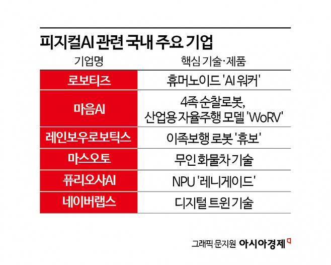 이족보행 로봇 '휴보(HUBO)'를 개발한 카이스트 연구진이 창업한 '레인보우로보틱스'는 지난해 말 삼성전자에 인수되며 주목받았다. 자율주행 전문기업 '마스오토'도 현재 롯데글로벌로지스와 협력해 무인 화물차 기술과 운영 모델 고도화를 진행 중이다. AI 업계 관계자는 "많은 국내외 AI 기업들이 피지컬 AI를 통한 가정용 휴머노이드 로봇 개발을 목표로 삼고 있다"며 "단순히 가사 보조 역할을 하는 것이 아닌 돌봄과 정서적 동반자 관계까지 이어지는 일상 전반을 아우르는 로봇 집사를 꿈꾸고 있다"고 말했다.