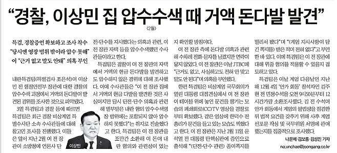당시 이상민은 비상계엄 국무회의에 참석하고, 계엄 해제 당일 언론사 단전·단수 지시 혐의를 받는 피의자 신분이었다. 그러나 경찰의 압수수색 영장에는 언론사 단전·단수 지시 의혹에 한정돼 있어 현금 압수는 불가능했다고 한다.