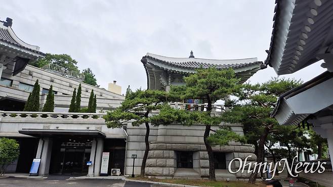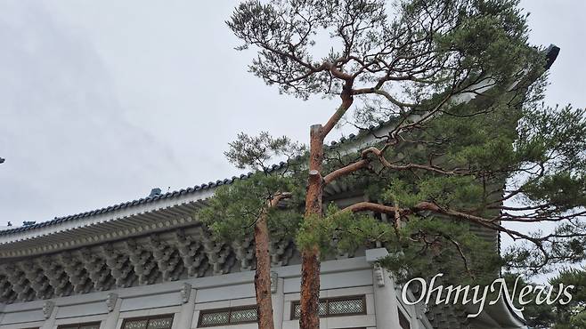 | ▲ 청와대 춘추관 고루-북을 가린 소나무 |
