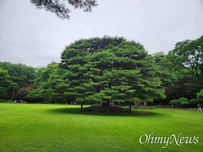 | ▲ 청와대. 천연기념물 반송 아래 일본조경석축 테두리잡기 |