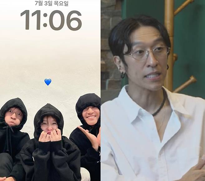 3일 늦은 오후, 빽가는 자신의 개인 계정에 코요태 신지, 김종민과 후드티를 맞춰 입고 찍은 가족사진을 게재했다.