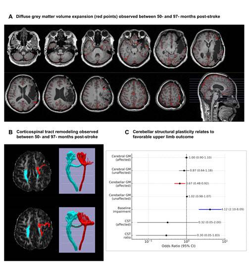 연구에 따르면, 일부 만성기 환자에게서 발병 수년이 지난 후에도 대뇌 피질 회백질의 부피 증가와 피질척수로(CST) 무결성 변화 등 뇌 구조의 재편성이 지속적으로 관찰됐다. 이는 뇌졸중 이후 회복을 좌우하는 신경 가소성이 장기간에 걸쳐 진행될 수 있음을 시사한다.