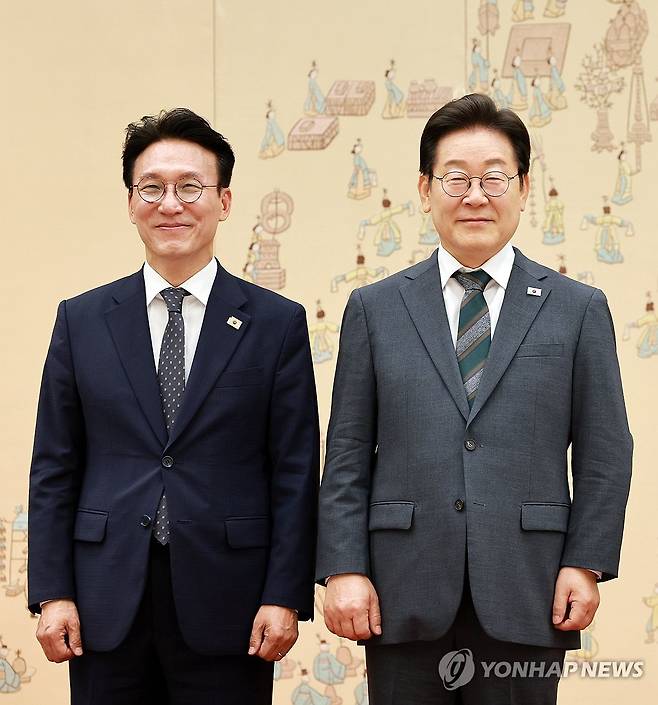 (서울=연합뉴스) 한상균 기자 = 이재명 대통령이 4일 용산 대통령실에서 김민석 국무총리에게 임명장을 수여한 후 기념촬영을 하고 있다. 2025.7.4 [대통령실통신사진기자단]