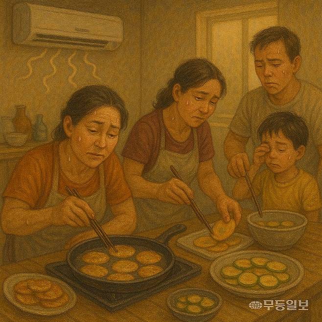 그냥 친정이나 가버릴까. 추석이라고 집에 오는 아이들에겐 티 안내려고 했지만, 도망치고 싶은 마음이 들 정도로 힘들었다. 연휴 첫날 아침, 아들네에는 "전을 다 부치고 정리가 되는 점심쯤 오라"고 전화했다. 전 부치고 음식 하면 에어컨을 틀어도 온 집안이 더워질 것 같았서다. 어린 아들 키우는 며느리에게 괜스레 부담주기도 싫었다. '더우면 짜증만 더 나? 여러사람 짜증날 필요는 없지'.