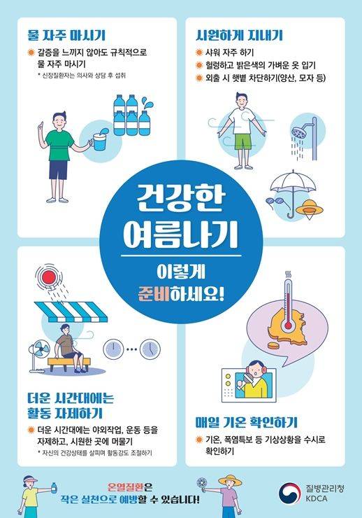 특히 어린이, 고령자, 심뇌혈관질환·당뇨병·치매 등 만성질환을 가진 시민들은 일반인보다 온열질환에 취약한 만큼 보호자와 주변인의 세심한 관심이 요구된다.