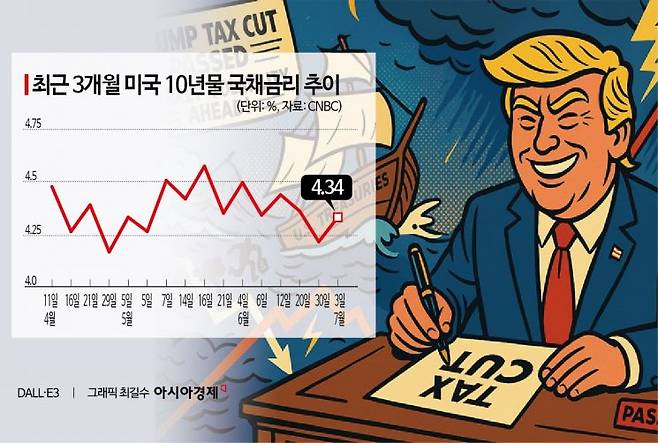 도널드 트럼프 대통령의 재집권 이후 감세 기조가 이미 시장에 충분히 반영돼 있어 이번 감세 법안 시행으로 인한 단기 충격은 제한적일 것이라는 분석이다. 재정적자 확대와 국가채무 증가라는 구조적 위험 역시 당장 자산시장을 흔들 만한 재료는 아니라고 판단했다.