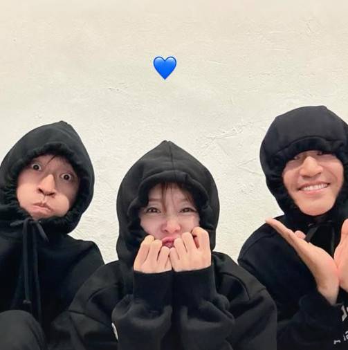 3일 빽가는 자신의 개인 계정 스토리 기능을 통해 파란 하트 이모지와 함께 배경화면 사진을 공개했다. 사진에는 코요태 신지, 김종민, 빽가가 검정 후드집업을 입은 채 팀워크를 드러낸 모습.
