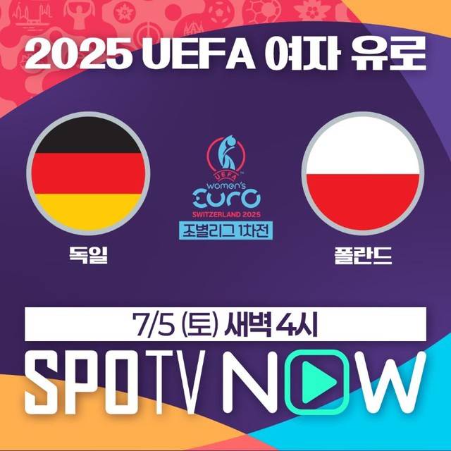 유럽 여자 축구 최강국을 가리는 2025 UEFA 여자 유로는 스포츠 전문 채널 스포티비 프라임(SPOTV Prime)과 스포츠 OTT 서비스 스포티비 나우(SPOTV NOW)에서 전 경기 독점 생중계된다.