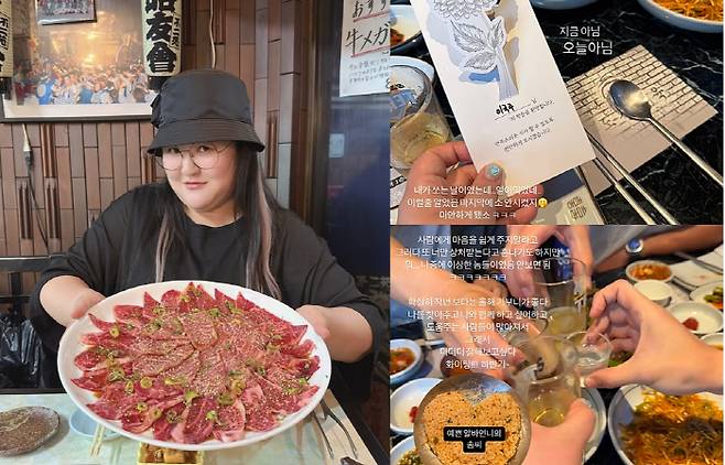 사진 속에는 지인들과 함께 식사를 하며 힐링 가득한 시간을 보내고 있는 이국주의 모습이 담겨있다.