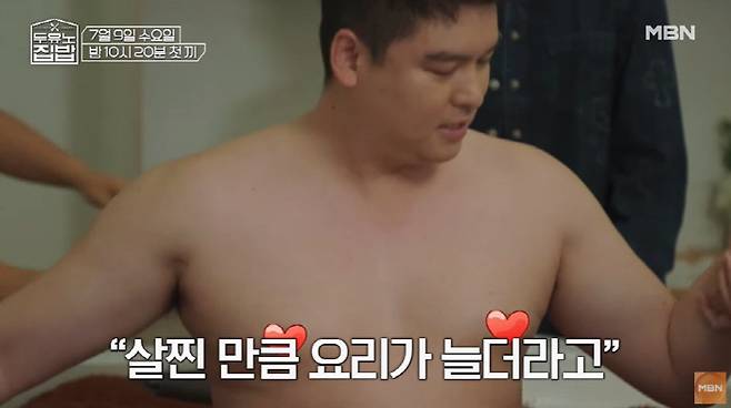 이장우가 "살찐 만큼 요리가 늘더라"면서 상의 탈의를 감행해 궁금증을 유발한다.