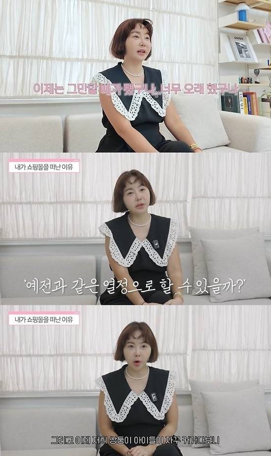 또 "이제는 예전처럼 열정을 쏟을 자신이 없더라. 아이들이 자꾸 크다 보니 워킹맘으로서 부족함을 느꼈고, 그 아이들에게 더 집중하고 싶어졌다. 체력적으로도 많이 힘들더라. 나 자신을 너무 혹사시켰던 것 같아서, 이제는 조금 나를 위한 시간을 가져보려 한다"고 휴식기를 가지려 하는 속내를 털어놓았다.