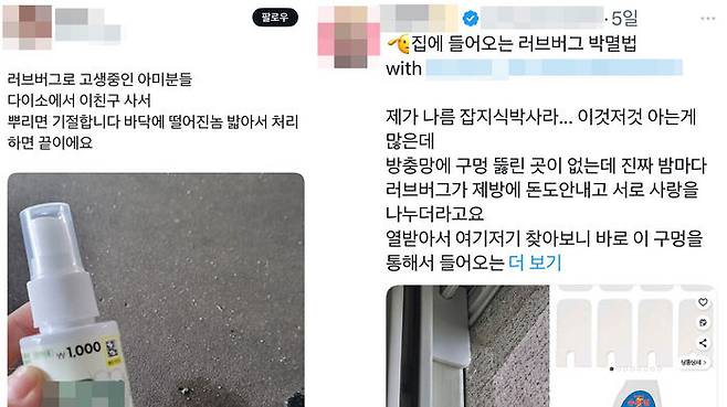 사회관계망서비스(SNS)에는 누리꾼들만의 '러브버그 퇴치법'도 올라오고 있습니다.