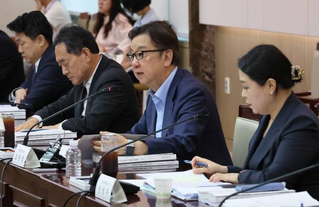 [4일 서울 종로구 정부서울청사에서 열린 제4차 국민연금기금운용위원회에서 위원장 직무대행인 조동철 한국개발연구원 원장(오른쪽 두번째)이 모두발언을 하고 있다. (사진=연합뉴스)]