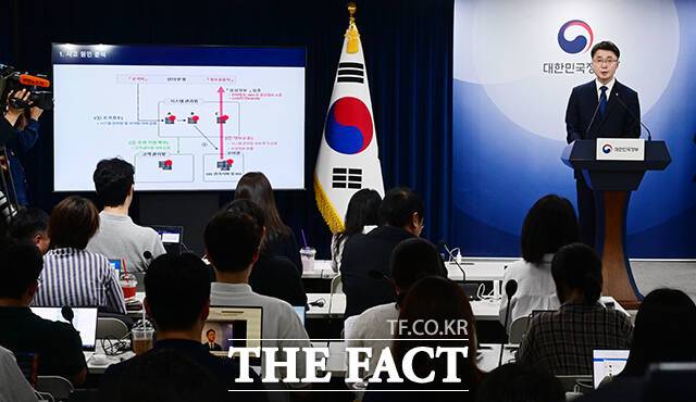[더팩트ㅣ임영무 기자] 류제명 과학기술정보통신부 제2차관이 4일 오후 서울 종로구 정부서울청사 브리핑실에서 SK텔레콤 침해사고 최종 조사결과를 발표하고 있다.