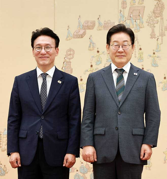 이 대통령은 이날 오전 용산 대통령실에서 김민석 국무총리, 강훈식 비서실장, 위성락 국가안보실장, 김용범 정책실장, 이종석 국가정보원장, 윤창렬 국무조정실장, 이한주 국정기획위원장에게 임명장 및 위촉장을 수여했다.