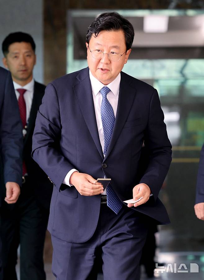 [서울=뉴시스] 김진아 기자 = 정진우 신임 서울중앙지검장이 박세현 서울고등검찰청장과 면담을 마친 뒤 4일 오후 서울 서초구 서울고등검찰청을 나서고 있다. 2025.07.04. bluesoda@newsis.com