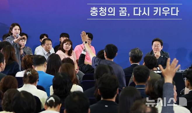 [대전=뉴시스] 고범준 기자 = 이재명 대통령이 4일 대전컨벤션센터에서 열린 '충청에서 듣다, 충청 타운홀 미팅'에서 참석자들의 질문 모습을 바라보고 있다. (대통령실통신사진기자단) 2025.07.04. bjko@newsis.com