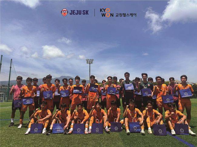 교원헬스케어 관계자는 "무더운 여름 시즌 구장을 달구는 유소년들에게도 새로운 활력을 주고 싶었다. 앞으로도 제주SK의 건강한 일상을 위한 다양한 제품을 지원할 계획"이라고 말했다. 7월 4일(금) 경남FC와의 맞대결 후 특별한 선물을 받은 제주SK U18팀 선수 양주원은 "마치 단비를 만난 느낌이다. 프로 선수단 뿐만 아니라 유소년 선수단까지 세심한 관심과 지원을 해주셔서 정말 감사하다"라고 말했다. / 10bird@osen.co.kr