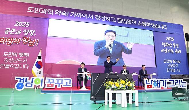 박완수 경남도지사는 4일 오후 남해군 국민체육센터에서 열린 '제7회 도민 상생 대화' 행사에서 "그동안 투자를 통해 남해가 남해안 관광의 중심지로 부상하고 있다"며 "현장에서 듣는 도민 목소리를 도정에 지속적으로 반영해 나가겠다"고 밝혔다.
