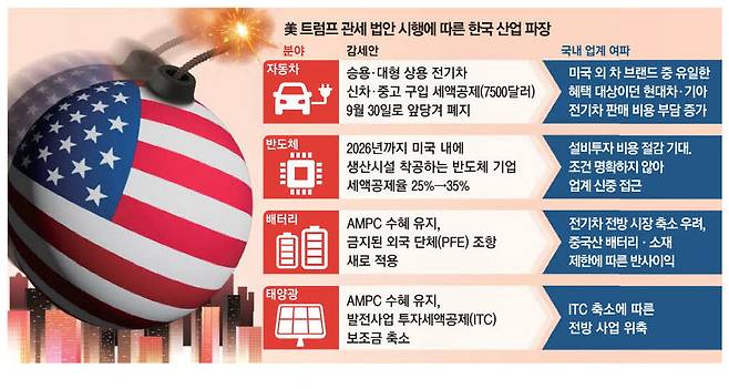 배터리 기업들은 전기차 시장 축소를 이번 감세안의 가장 큰 리스크로 지목한다. 다만 업계 관계자는 "중국산 배터리에 대한 고율 관세 부과에 더해 중국계 배터리 기업들이 미국 내에서 세액공제를 받는 길이 사실상 막힌 셈"이라며 "한국 기업의 북미 내 경쟁력이 상대적으로 부각될 수 있다"고 말했다.