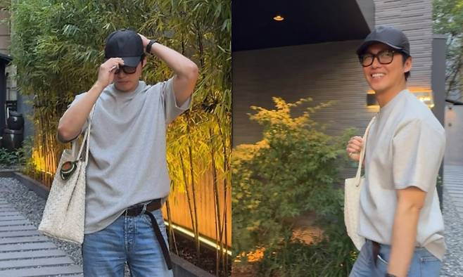 사진 속 남궁민은 회색 반팔 티와 청바지로 편안하고 깔끔한 패션 스타일을 선보였다. 검은색 볼캡과 뿔테안경, 손목시계, 흰색 가방도 눈길을 끌었다.