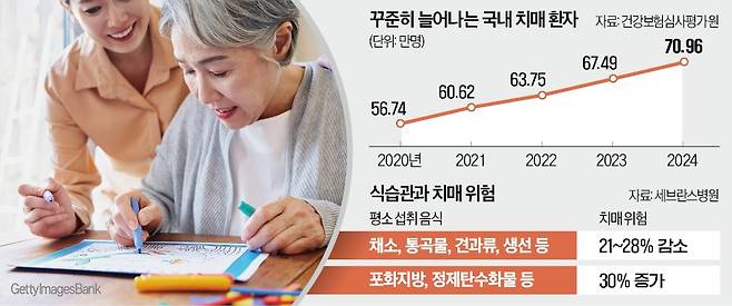 치매는 인지 기능이 점차 떨어지는 퇴행성 신경질환이다. 건강보험심사평가원에 따르면 지난해 기준 치매로 국내 의료기관에서 진료받은 환자는 70만 명을 넘었다.